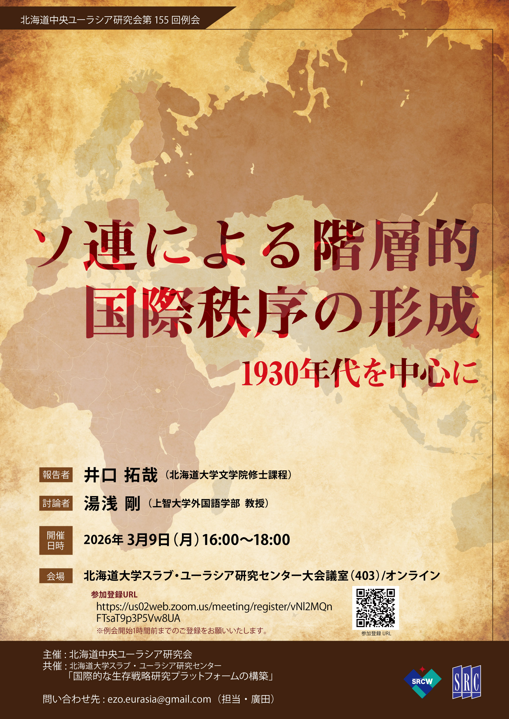 北海道大学スラブ・ユーラシア研究センター4階大会議室(403)/オンライン併用