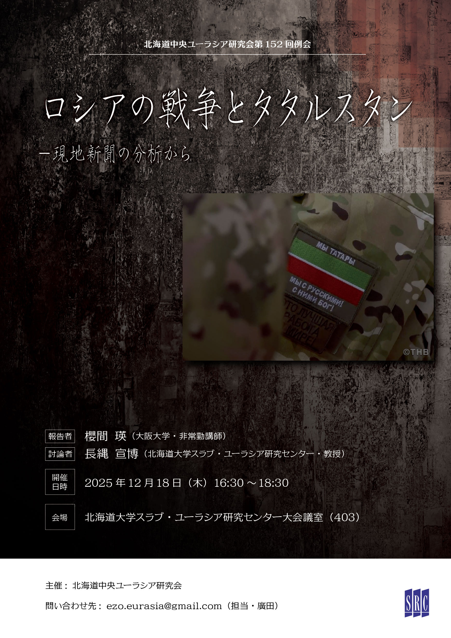 2025/11/19  「北海道中央ユーラシア研究会第152回例会」のお知らせを掲載しました。