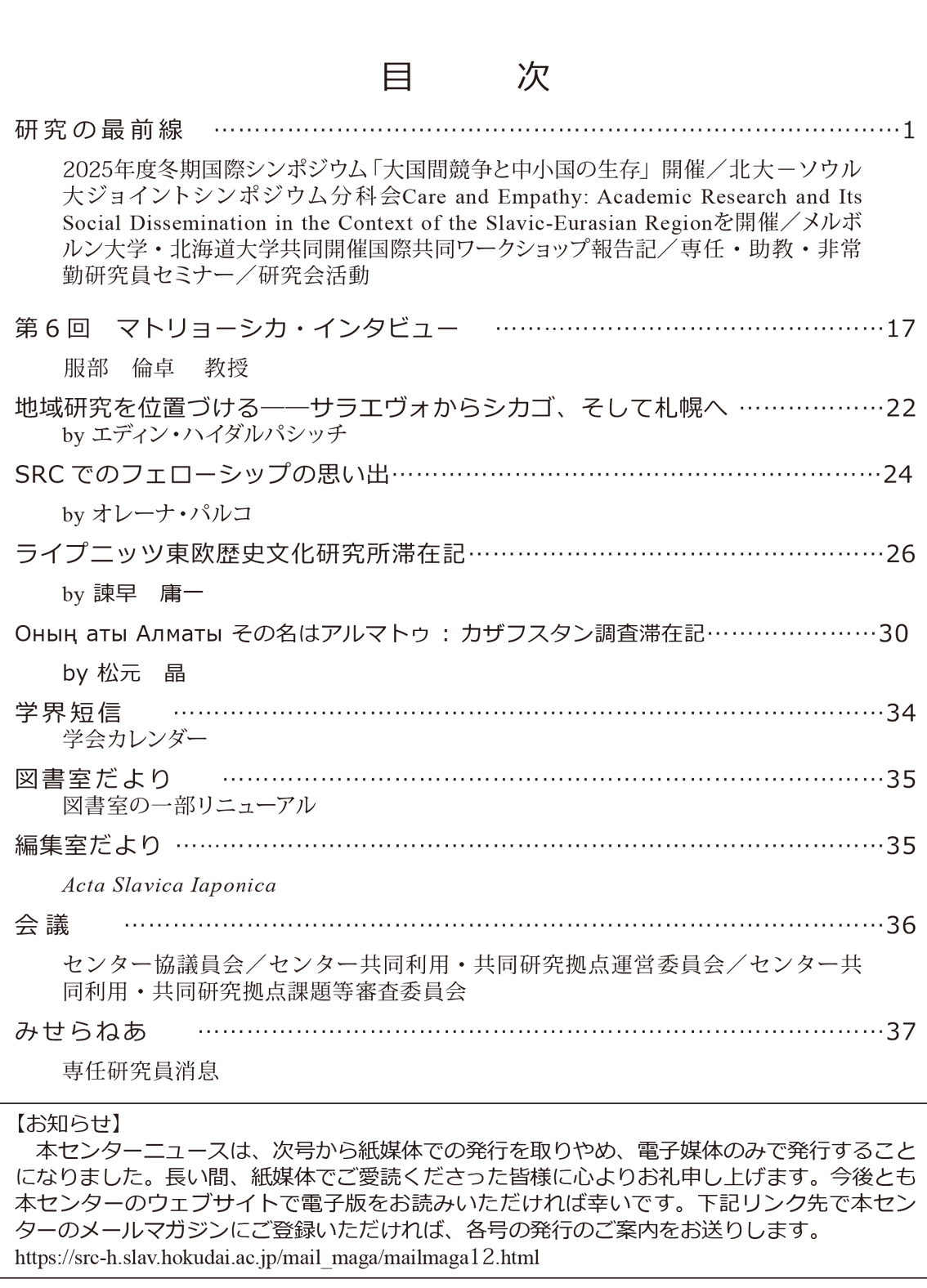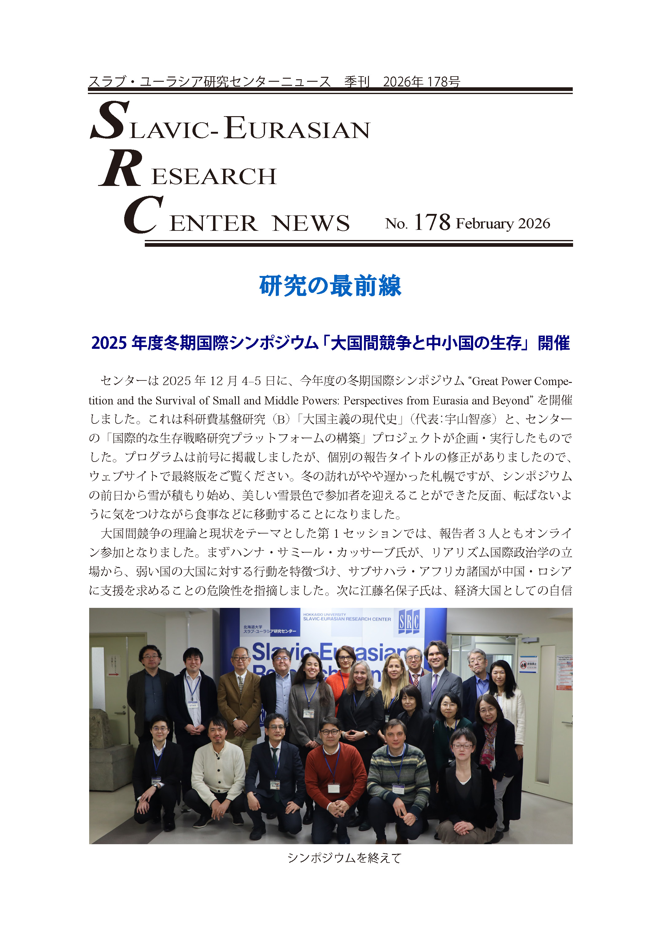 スラブ・ユーラシア研究センターニュース 178号 -2026年 2月-